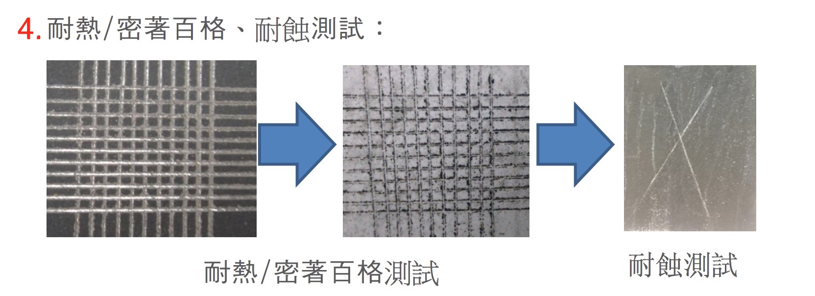 4.耐熱、密著、耐蝕測試